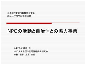 | 進行役 | 北海道G空間情報技術研究会 | 会長 | 石田 廣幸 |